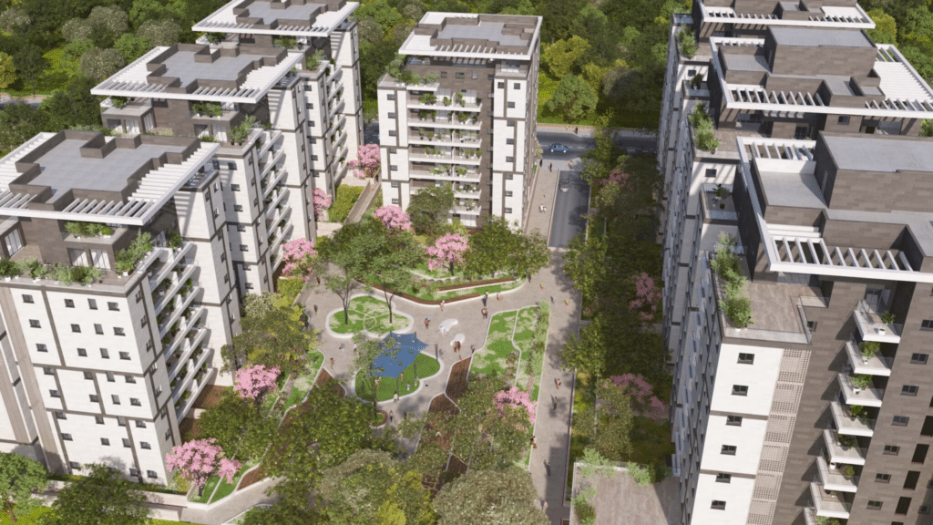 היתרון הבולט של הפרויקט ברובע הבינלאומי הוא הקרבה המשמעותית לרכבת, לצד תכנון מחודש שמגדיל את השטחים הפתוחים ומחזק את איכות החיים במתחם.